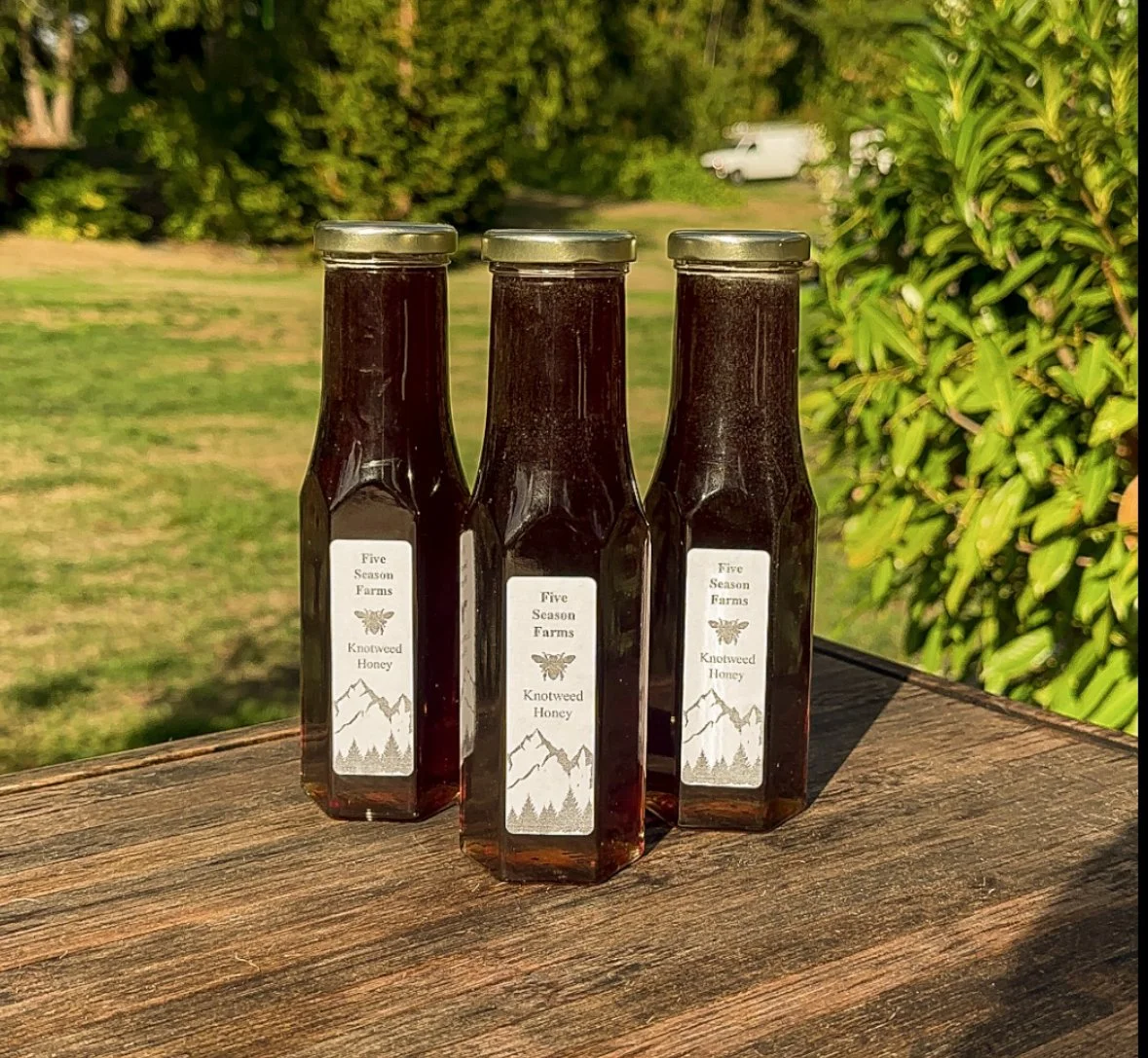 Knotweed Honey Fancy 1lb $22.00 Fireweed Honey Fancy 4oz $9.00 Knotweed Honey Bear $15.00 Blackberry Honey 3lb $40.00 Fireweed Honey 12 oz $16.00 Knotweed Honey 12 oz $16.00 Blackberry Honey Bear $15.00